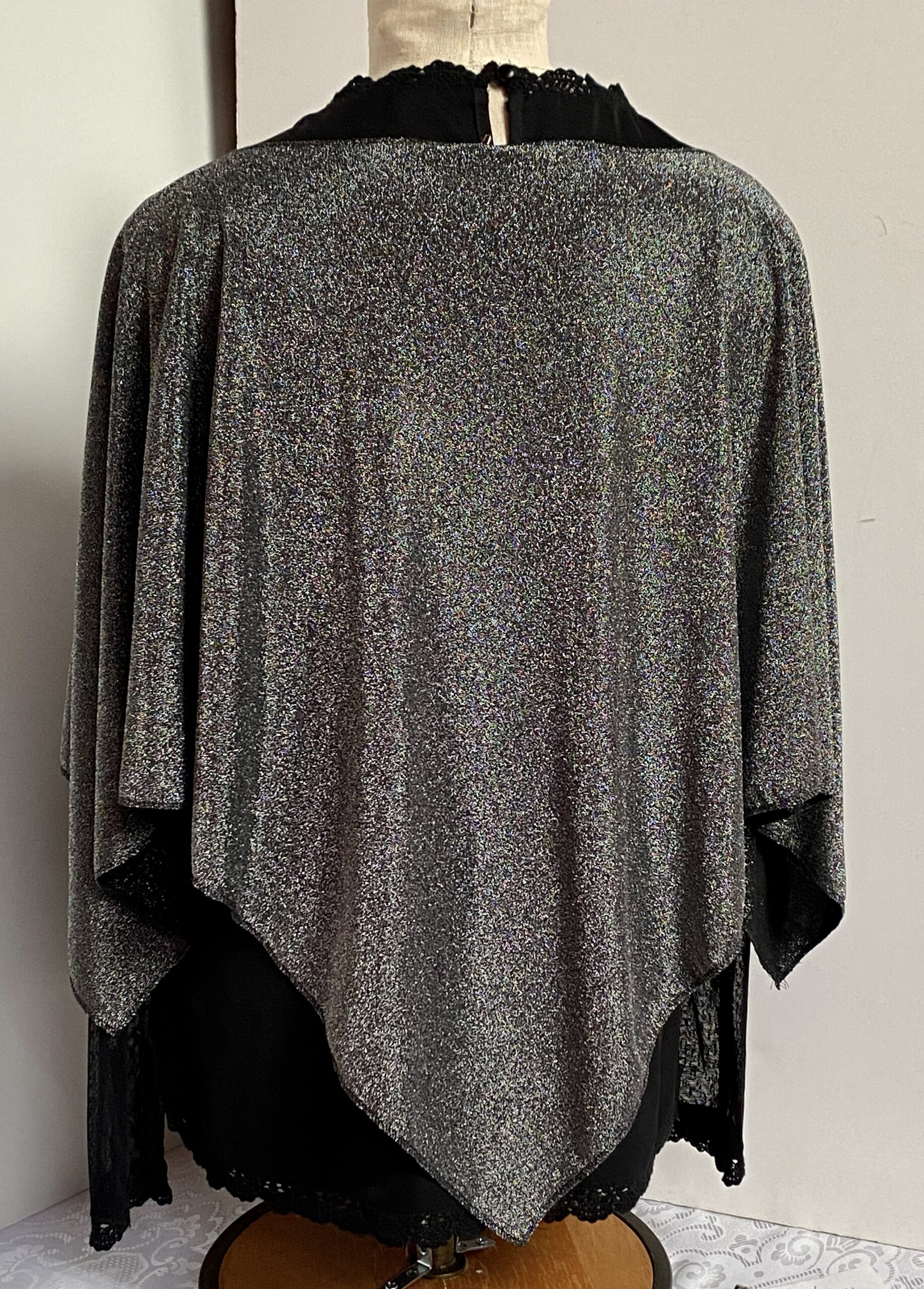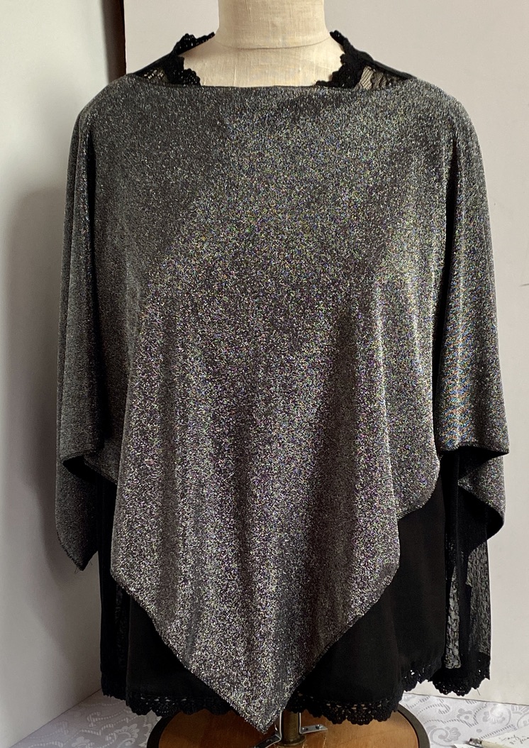 To keep your poncho looking its best, gently hand wash in cold water and hang to dry. Avoid machine washing or tumble drying to preserve the metallic shine and fabric integrity.