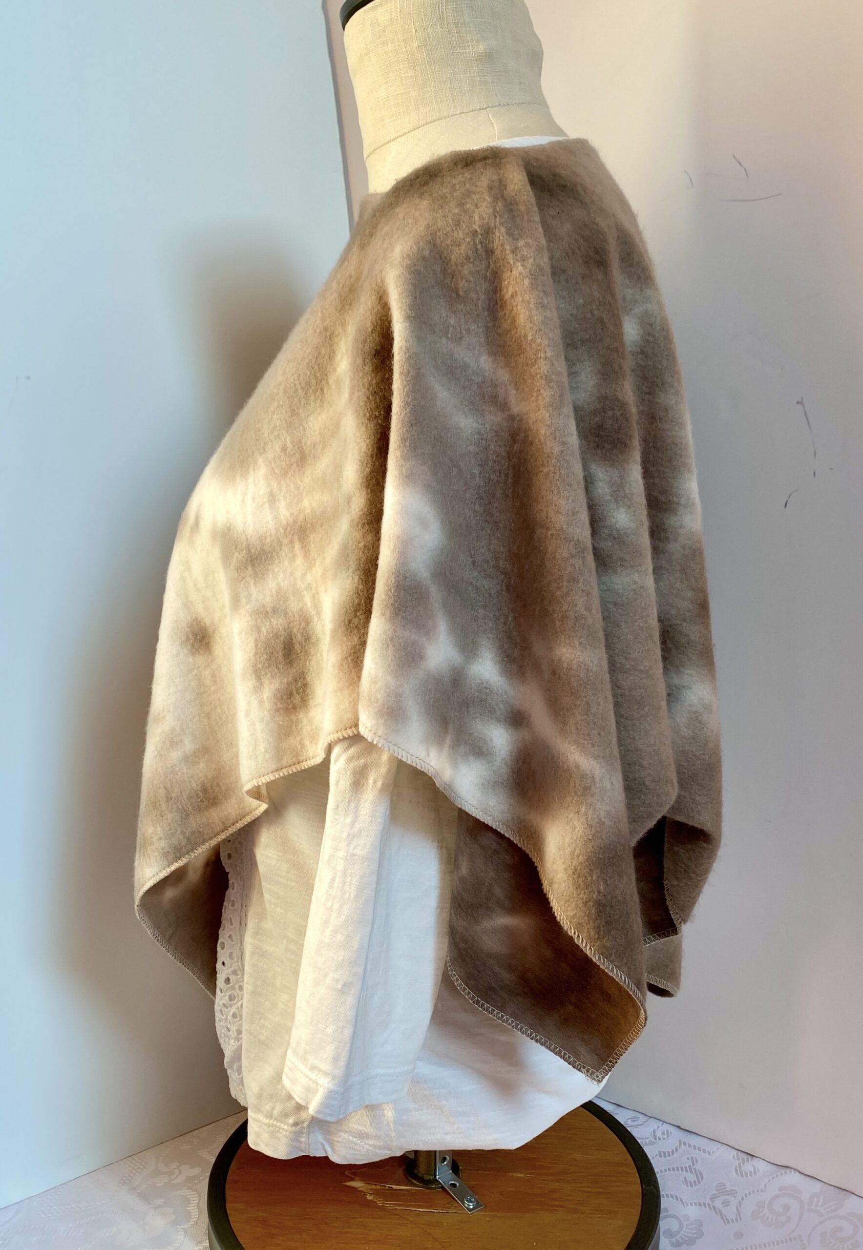 Discover effortless style and comfort with this short poncho, beautifully crafted in a sweater knit fabric. Designed with a modern tie-dye pattern in neutral tones, it pairs easily with any wardrobe, offering versatility for any season.
